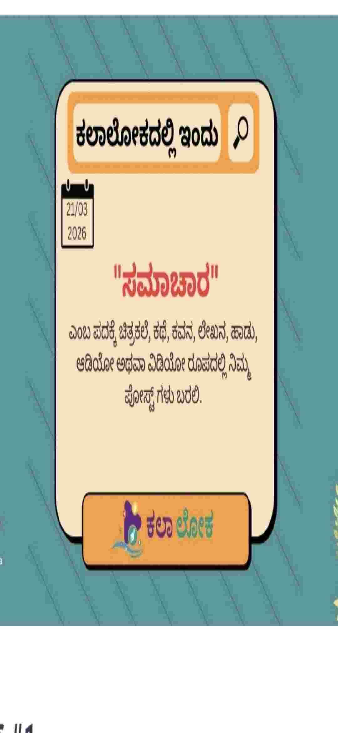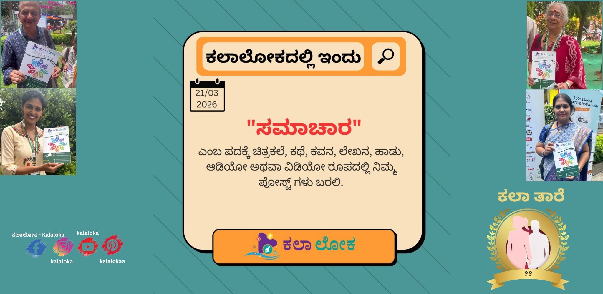 ಕಲಾಲೋಕದ ಬೆಳಕಿನಲ್ಲಿ ನಾನೊಂದು ಕಿರಣನಿಮ್ಮ ಪ್ರೋತ್ಸಾಹವೇ ನನ್ನ ಶಕ್ತಿ, ನನ್ನ ಧ್ಯೇಯ“ಕಲಾ ತಾರೆ