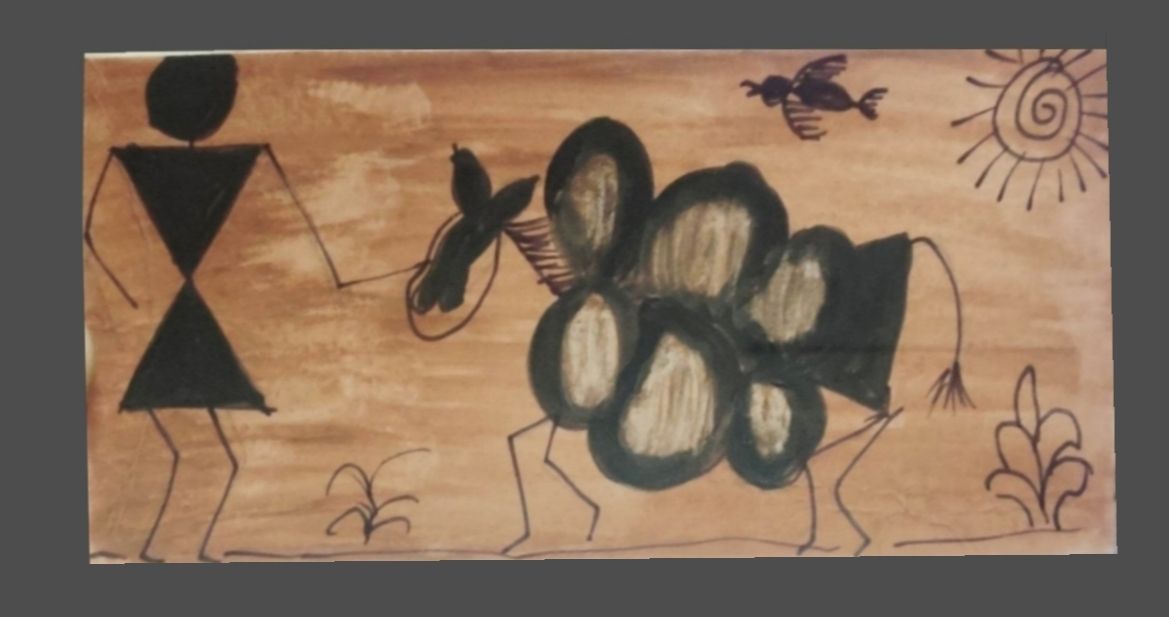 ಭಾರ ಹೊತ್ತ ಮೂಕ ಪ್ರಾಣಿ (ವರ್ಲಿ ಕಲೆಯಲ್ಲಿ)
