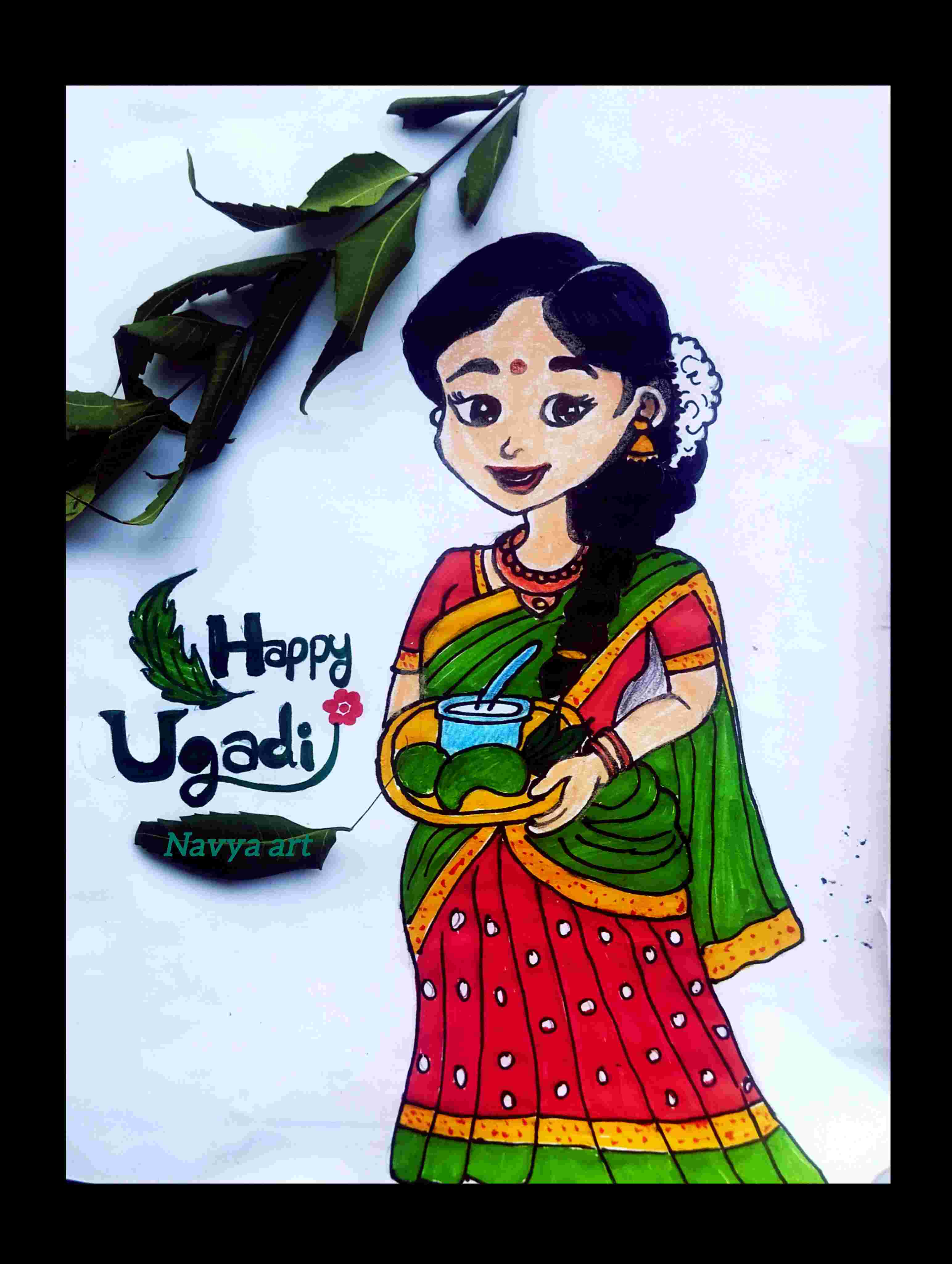 ಯುಗಾದಿಯ ಚಿತ್ರವನ್ನು ಮಂಡಲ ಕಲೆಯ ಮೂಲಕ ಚಿತ್ರಿಸಿದ್ದು.