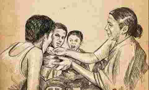 ದಯೆ ತೋರಿ ಕಾಪಾಡು ಎಂದು ದೇವರಲ್ಲಿ ಮೊರೆ ಇಡುತ್ತಿರುವ ಹುಡುಗಿಯ ಚಿತ್ರ. ಆಯಿಲ್ ಪೇಯಿಂಟ್ ಬಳಸಿ ಚಿತ್ರಿಸಿದ್ದು.