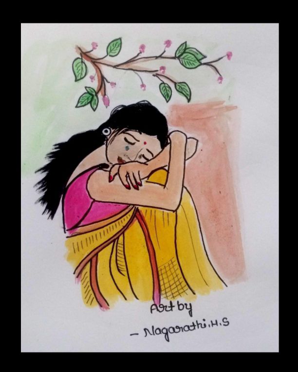 ಮನದಲ್ಲಿ ಅದುಮಿಟ್ಟಿರೋ ಎಷ್ಟೋ ಭಾವನೆಗಳು ಒಂಟಿಯಾದಾಗ ಅವೇ ಸಾಕು ಕಣ್ಣೀರಿಗೆ ನೆಪವಾಗಲು.ವಾಟರ್ ಕಲರ್ ಬಳಸಿ ಚಿತ್ರಿಸಿದ್ದು.